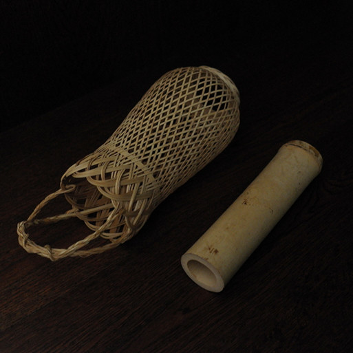 단단한 대나무로 짜인 밝은 갈색의 바구니