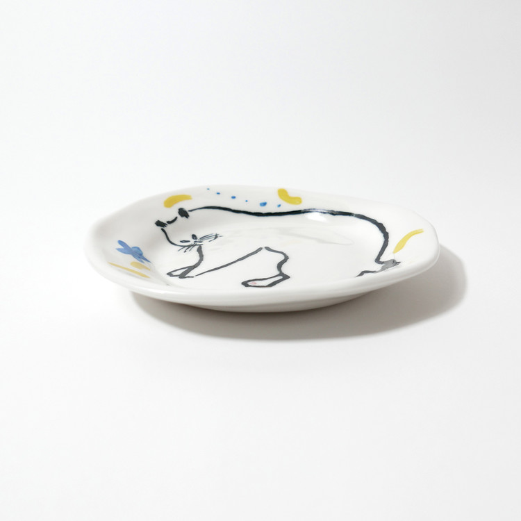 하얀 고양이 접시. 한차연 작가