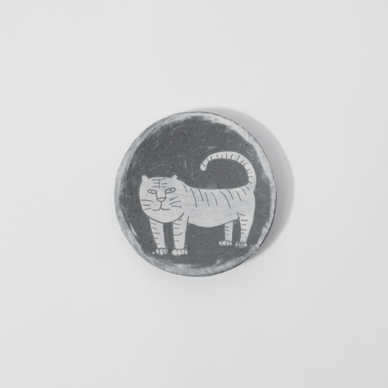 어두운 바탕 위에 하얀 화장토로 그려낸 호랑이는 듬직하면서도