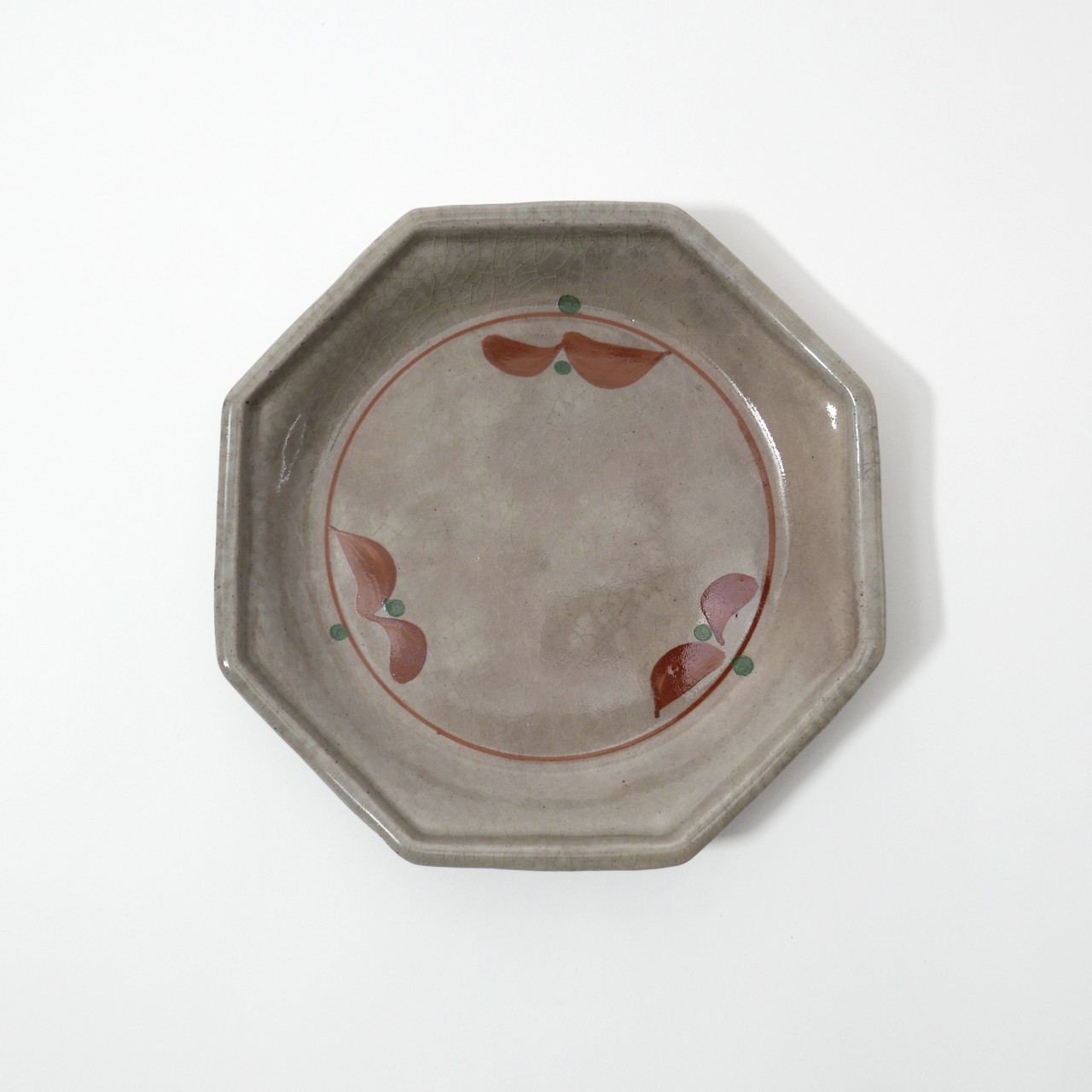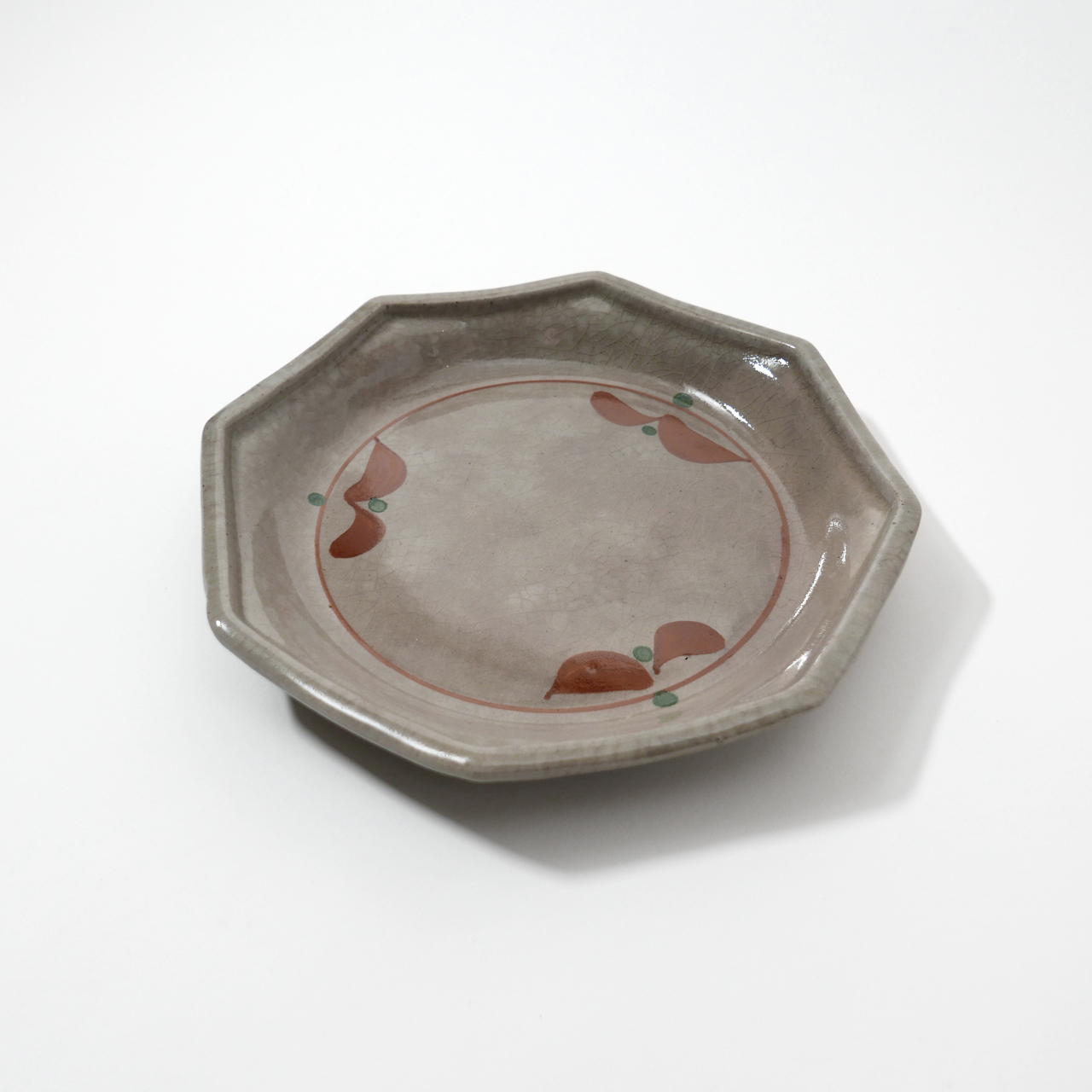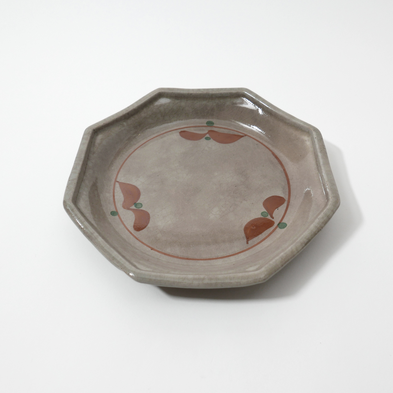 초화 문양을 더한 회빛 팔각 초화 접시입니다.