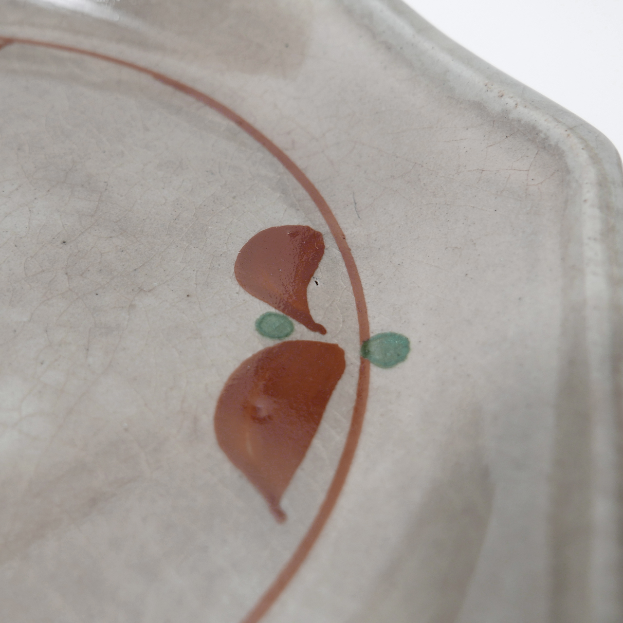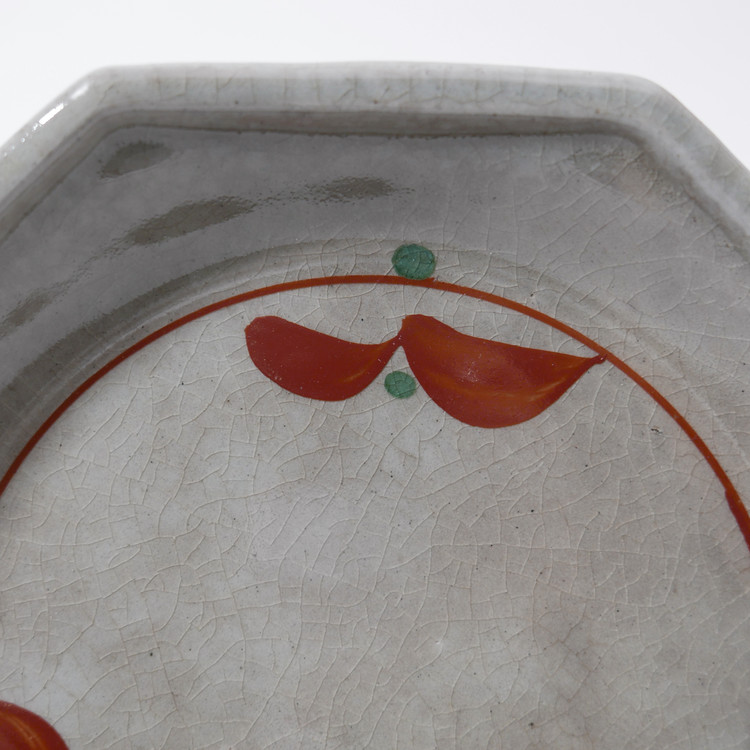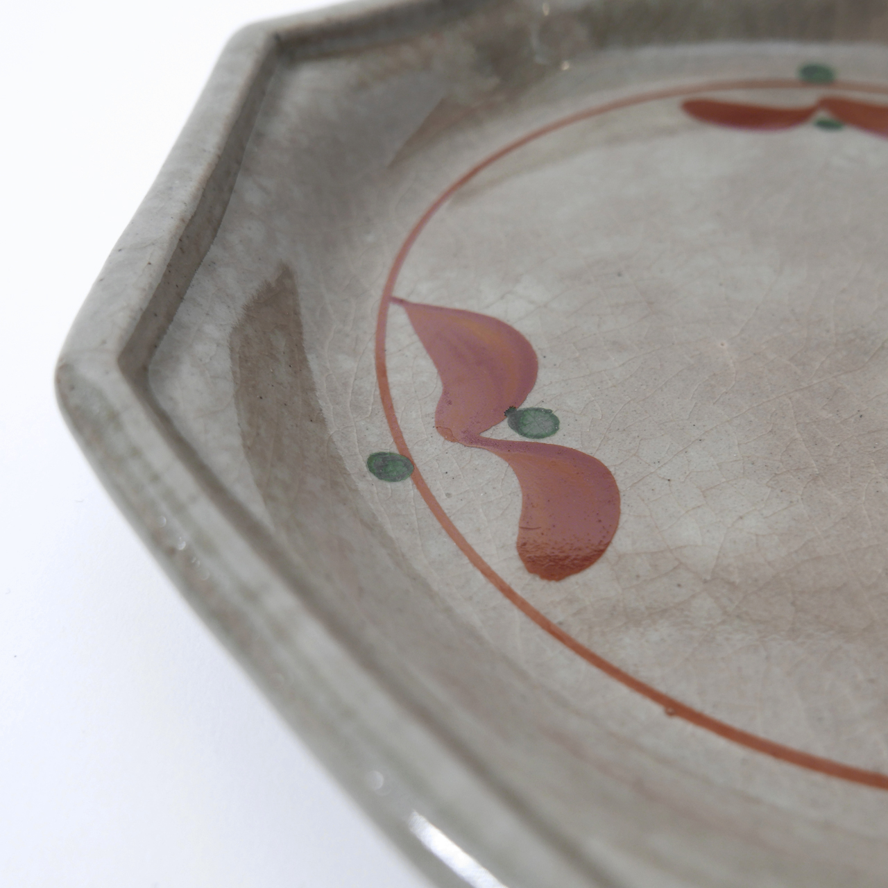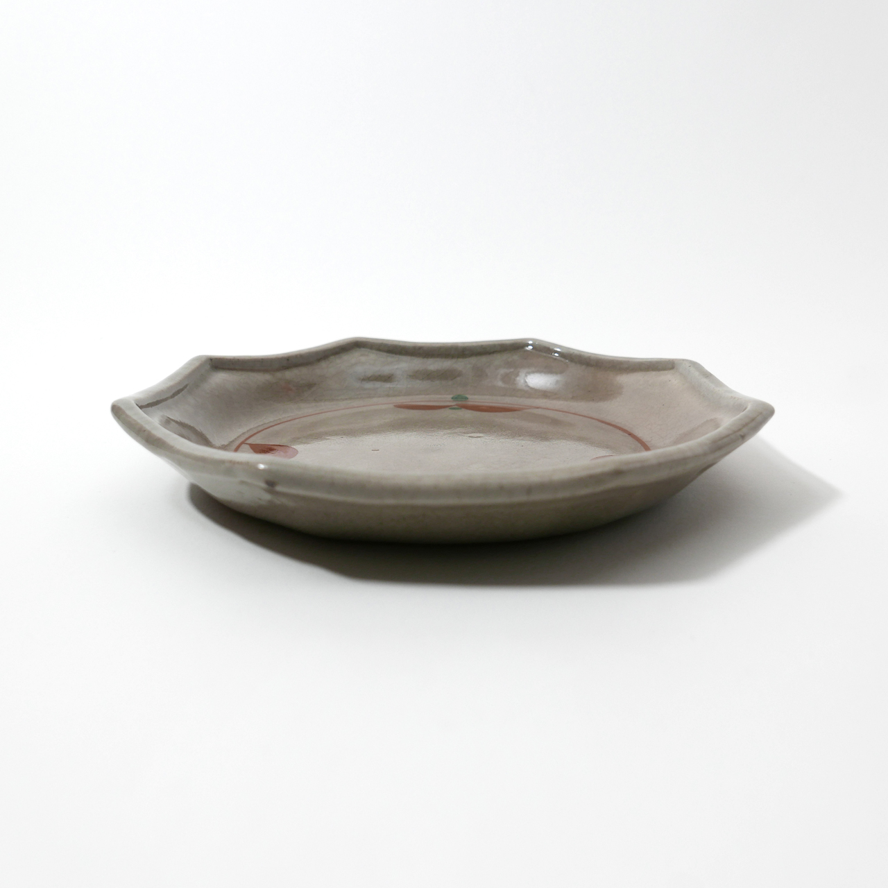 초화 문양을 더한 회빛 팔각 초화 접시입니다.