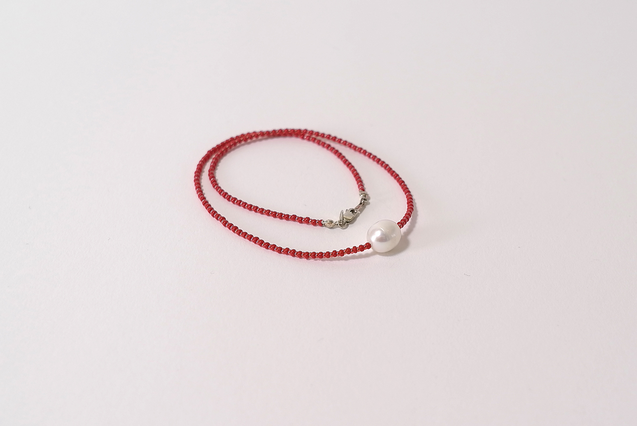 재패니즈 비즈와 원석 산호를 엮어 만든 목걸이는