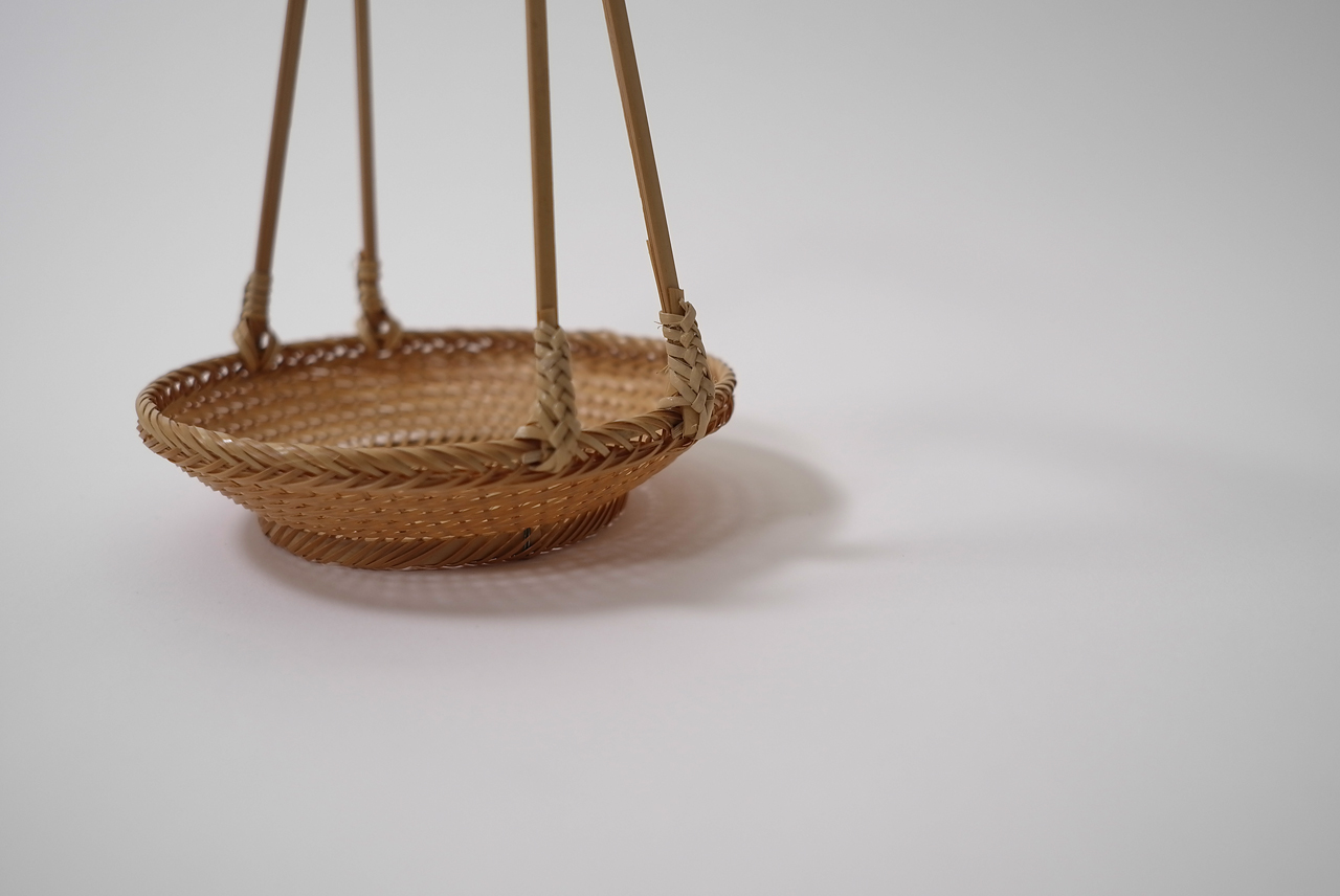 대나무로 단단하게 만들어진 손잡이 바구니는