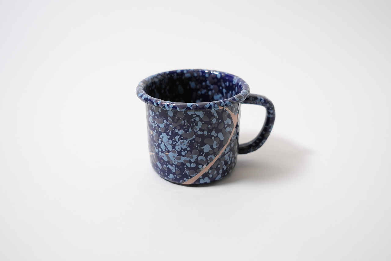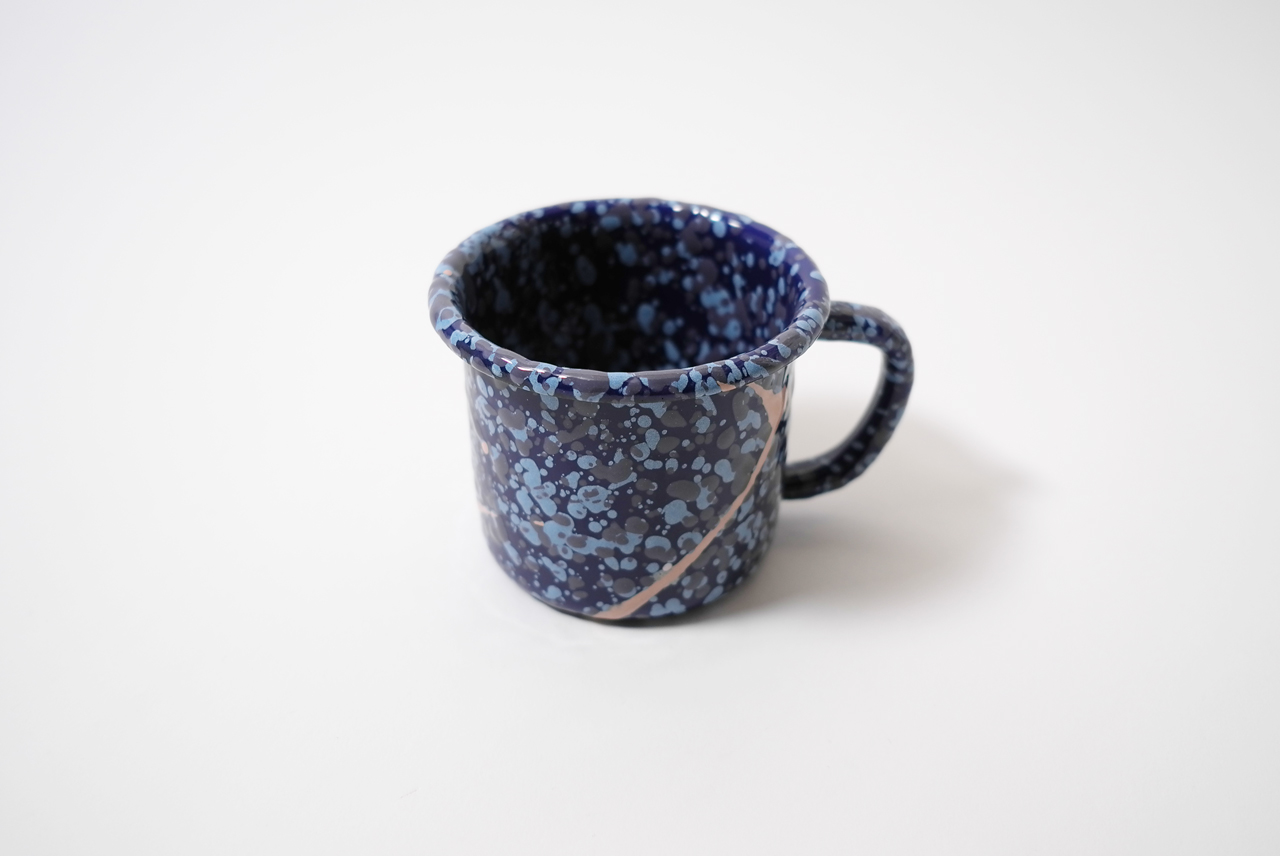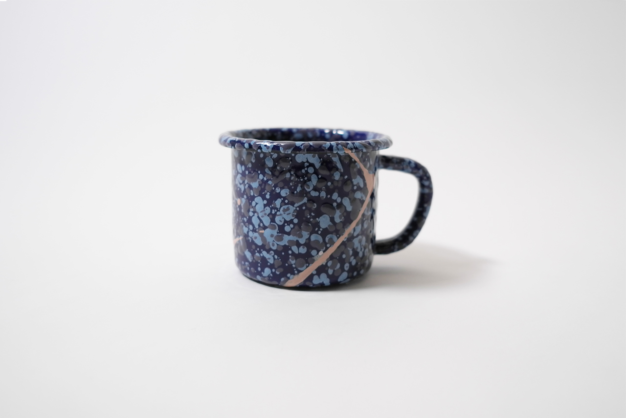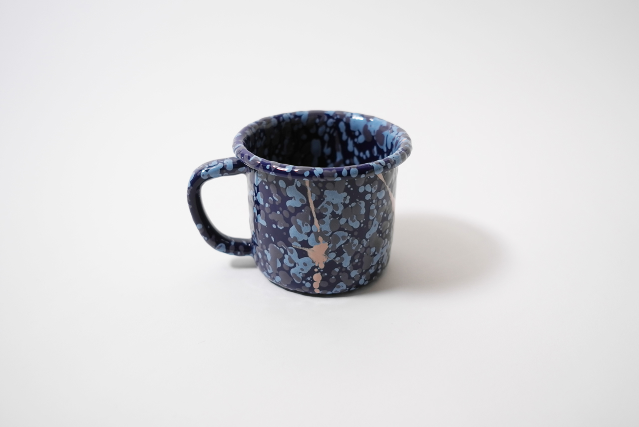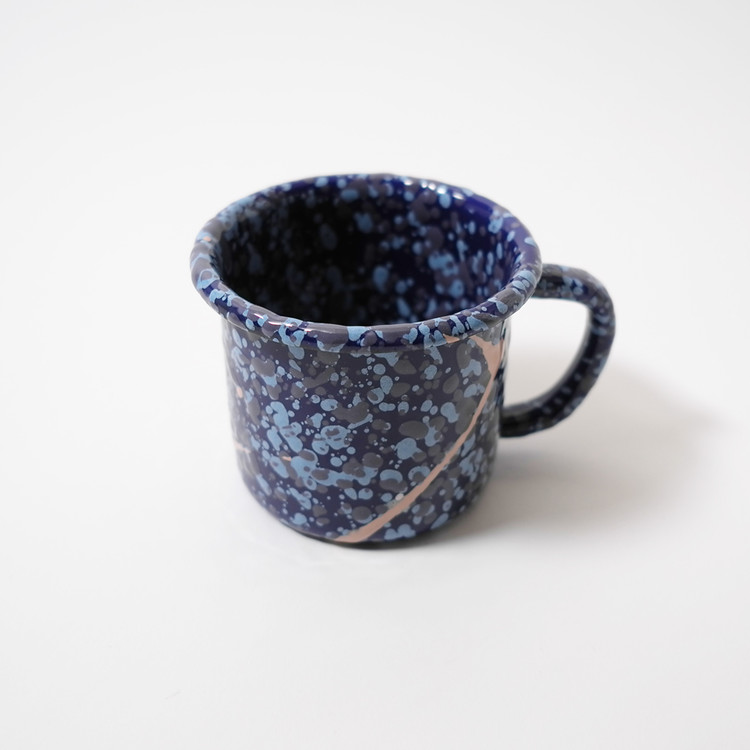 물감이 튄 듯 경쾌한 디자인의 법랑 머그 컵입니다.