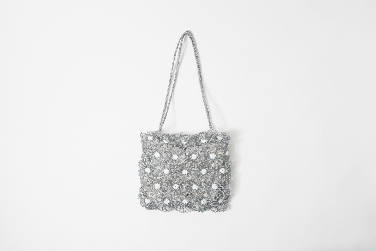 데이지의 하얀 꽃술과 잘 어울리는 그레이 컬러의 가방입니다.