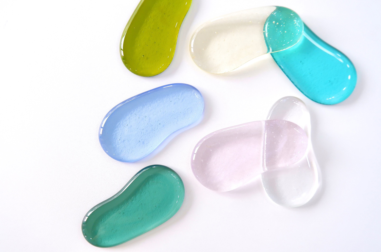 여러 컬러의 유리를 녹여 형태를 만들고 다듬어