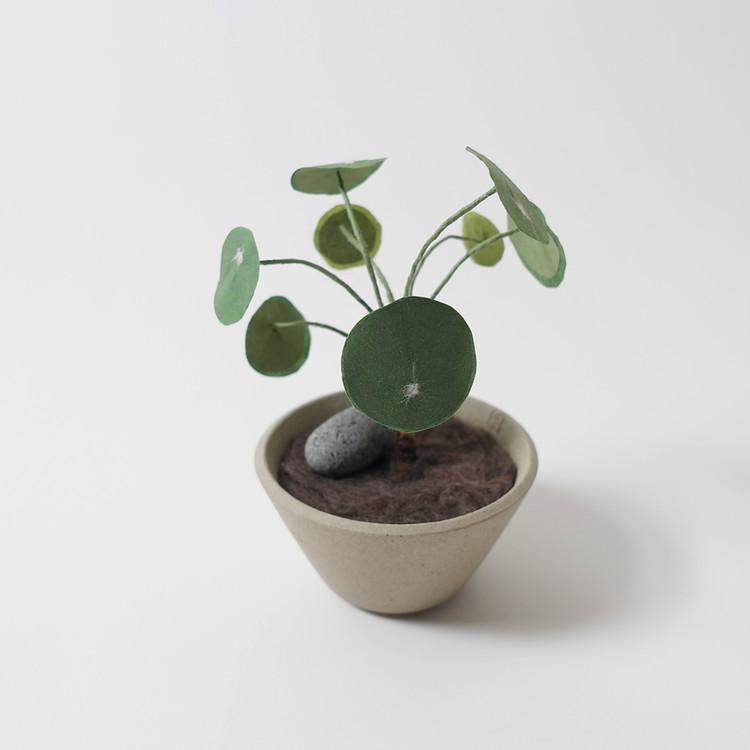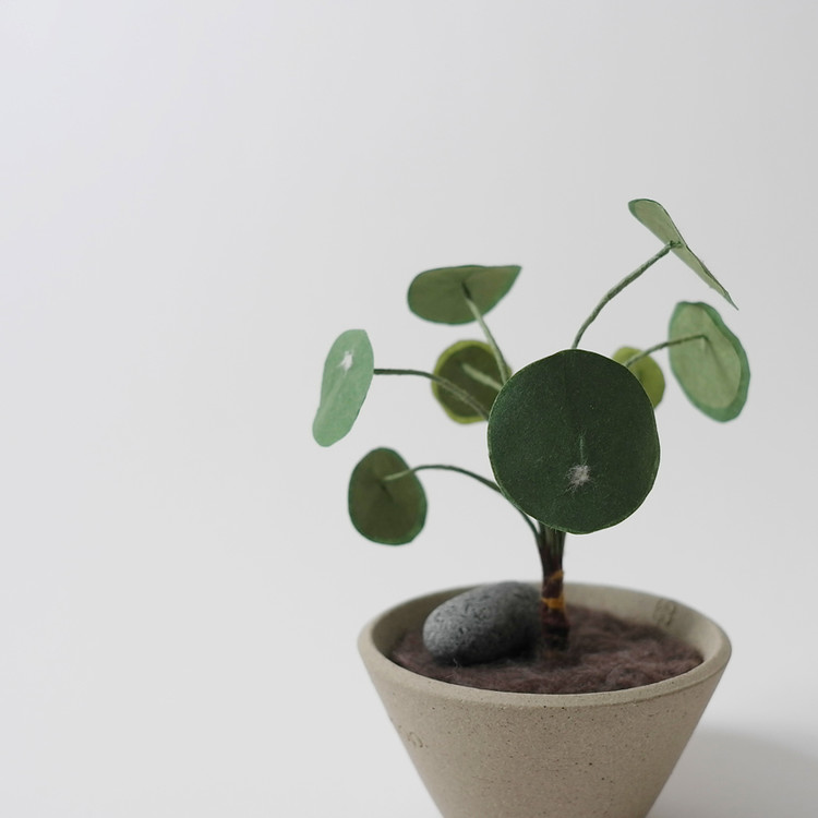 종이와 와이어로 완성되었으며 화분 속 흙은 양모 펠트로 표현되었으며