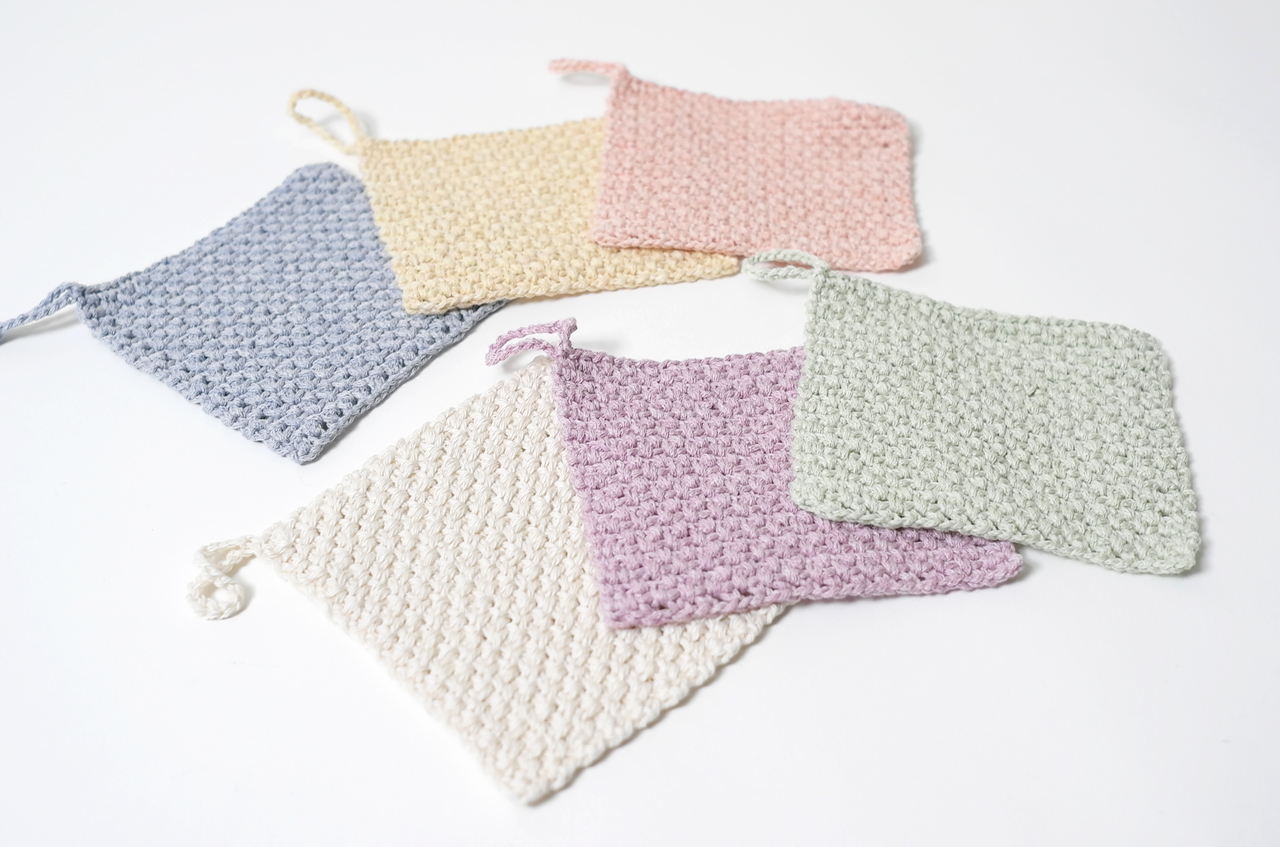 처음 선보인 핸드메이드 100% 오가닉 코튼 헹굼 수세미입니다.
