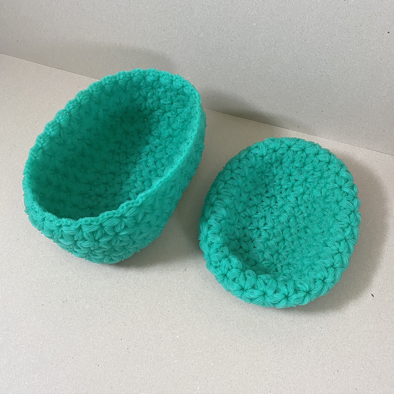 재스민 꽃을 닮은 패턴이 가득 찬 바구니는