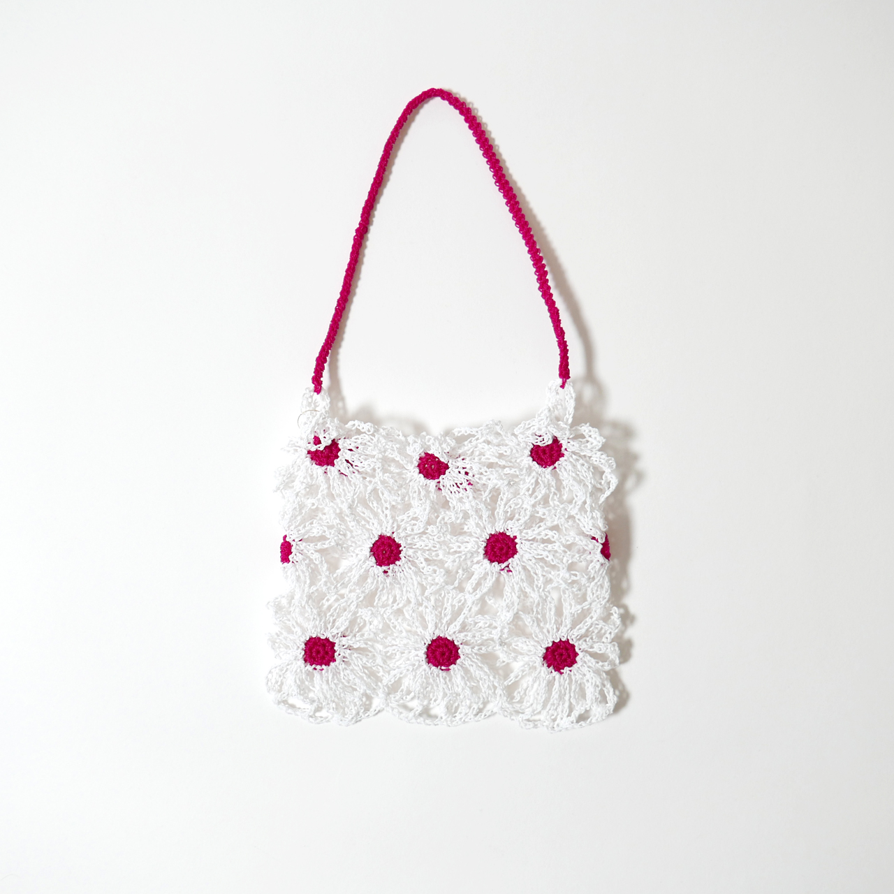 핑크 꽃술과 잘 어울리는 화이트 컬러의 데이지 가방입니다.