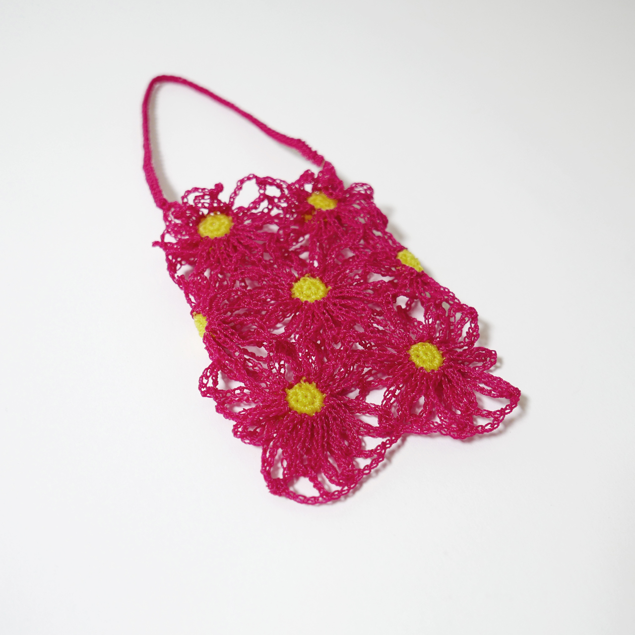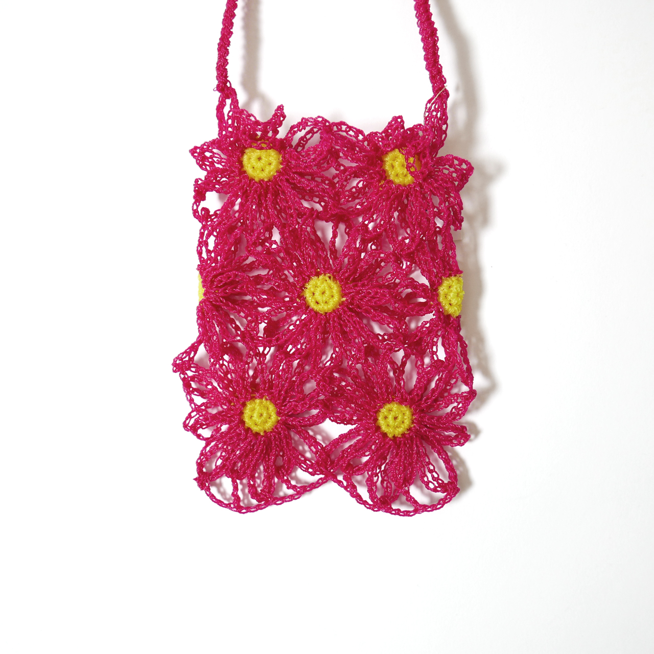 노란 꽃술과 잘 어울리는 핑크 컬러의 데이지 가방입니다.