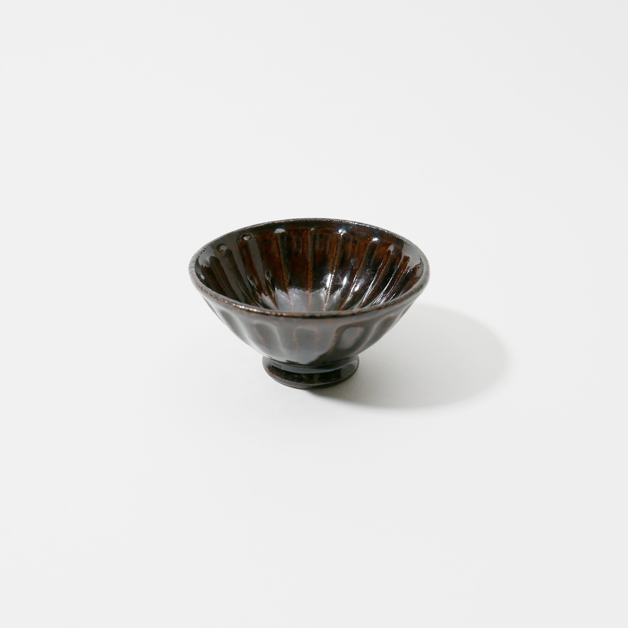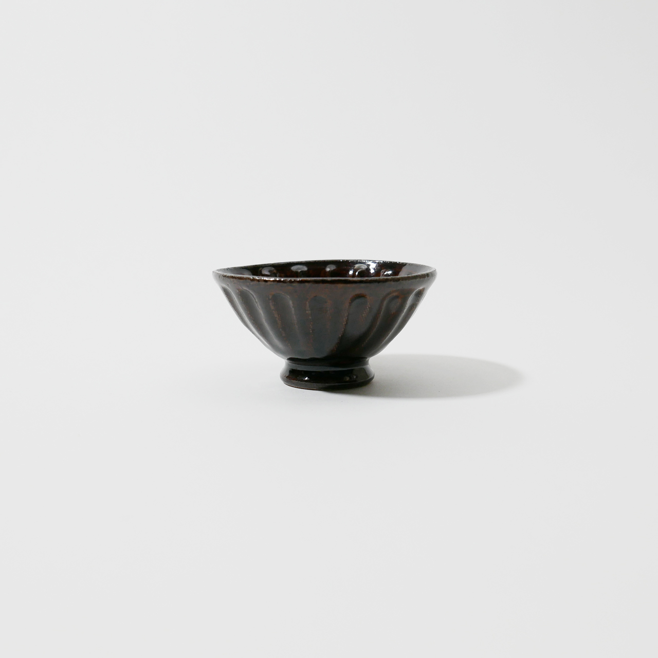 꽃잎 형태의 진한 팥 양갱색을 가진 찻잔입니다.