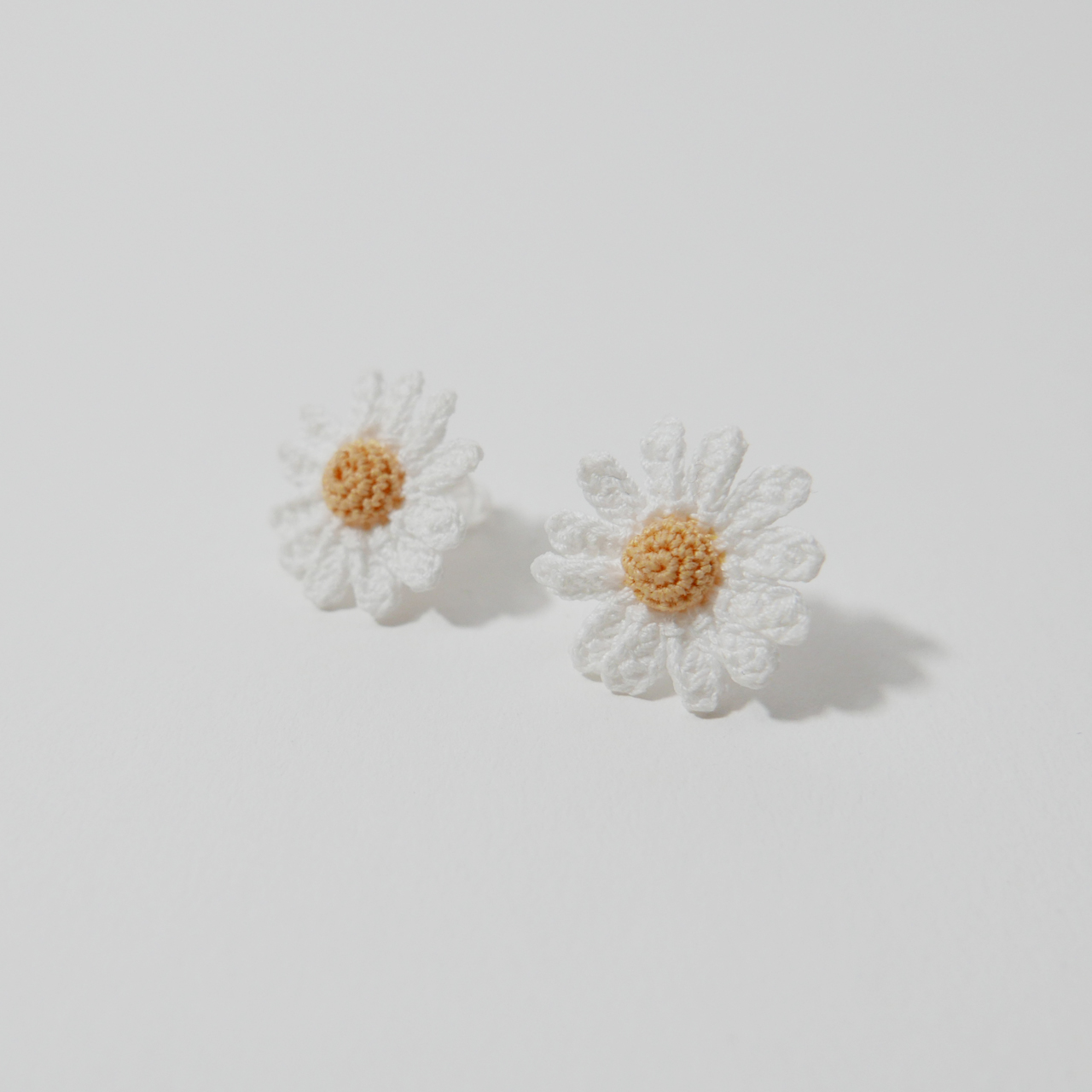 손뜨개로 만든 화이트 데이지 귀걸이 입니다.