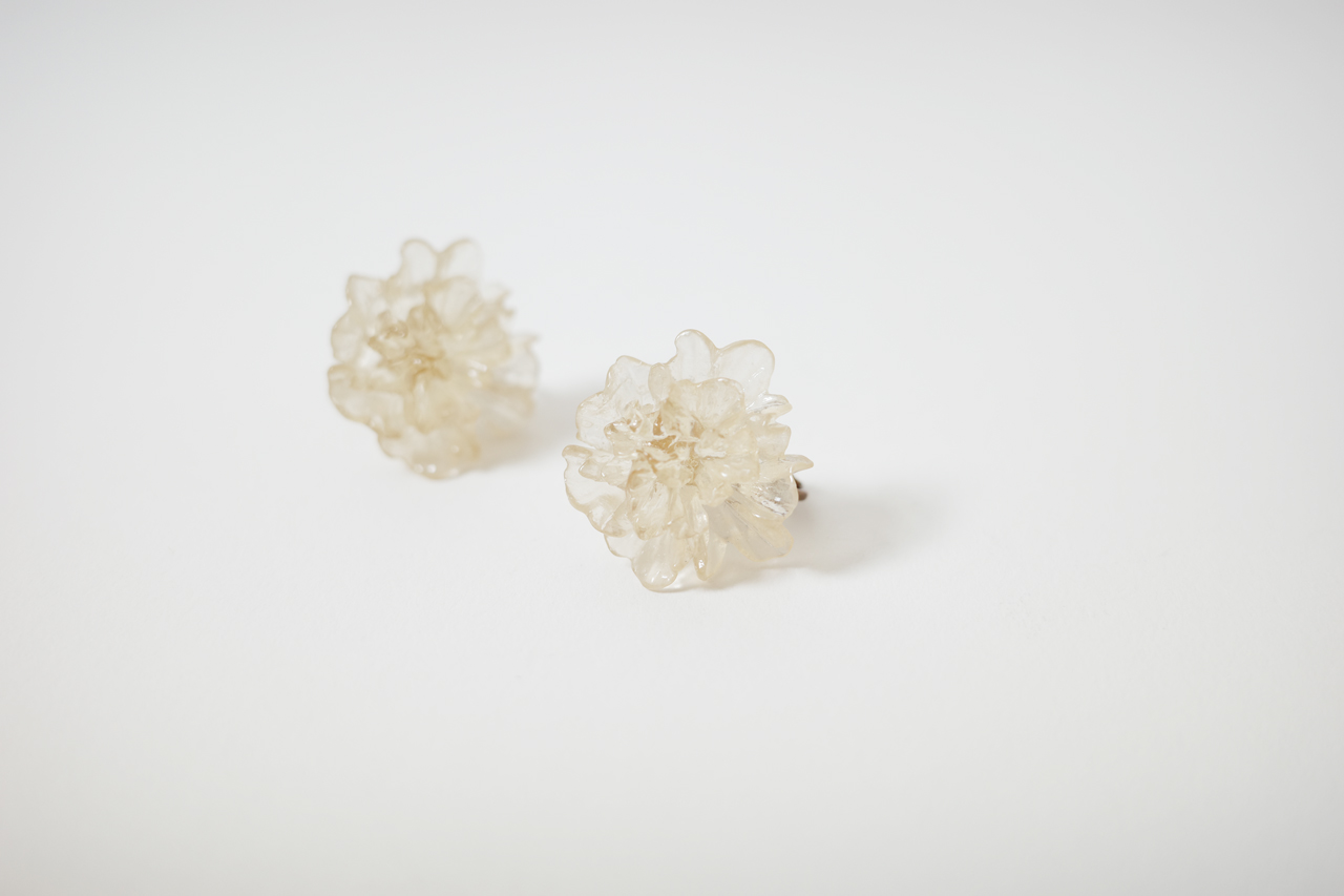 투명한 꽃잎이 특징인 빈티지 이어링 한 쌍입니다.