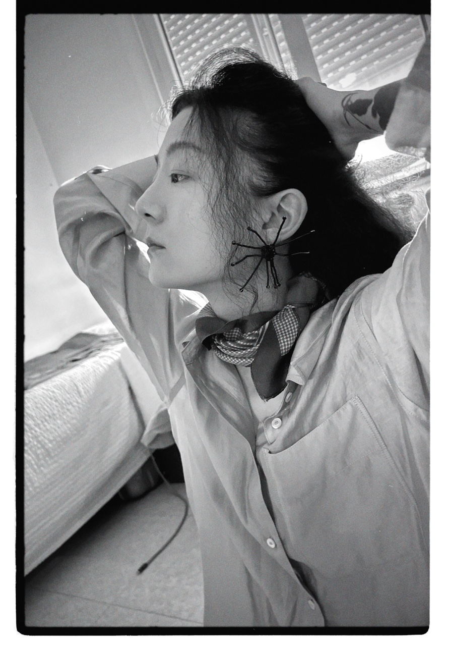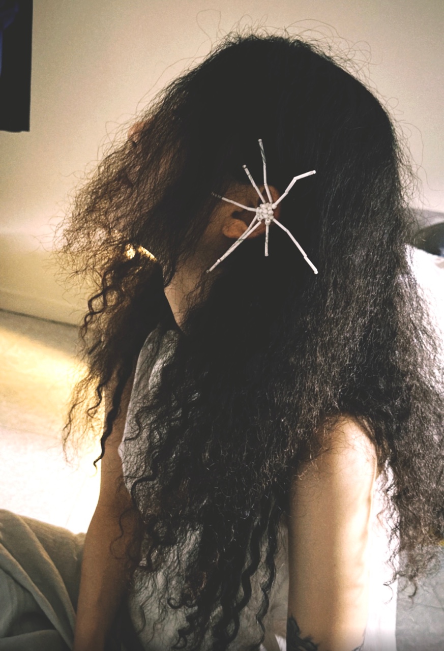 비정형의 디자인으로 유리 비즈와 은침(silver925)으로 완성되었으며