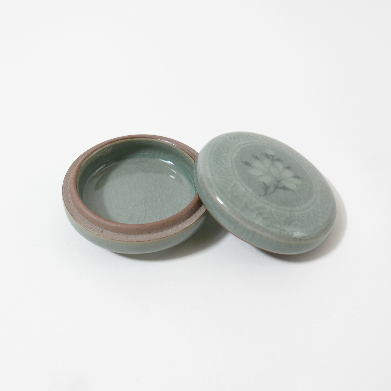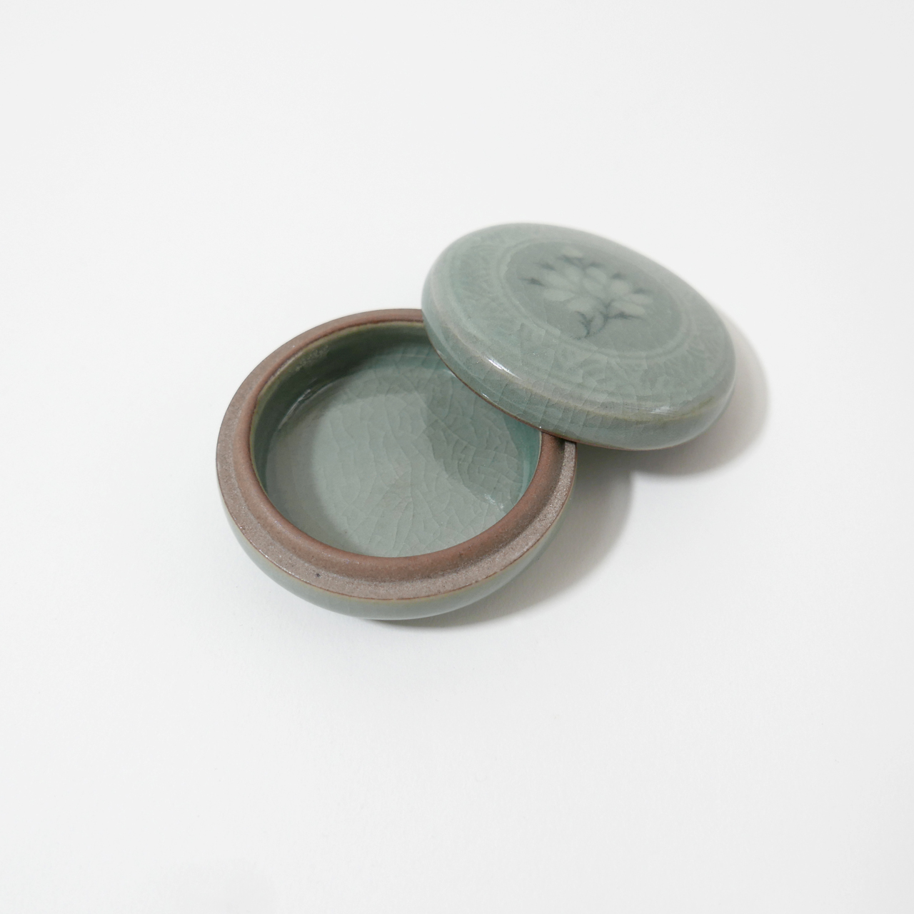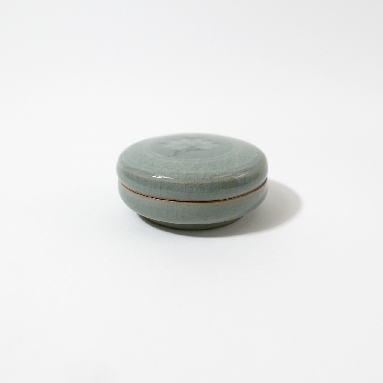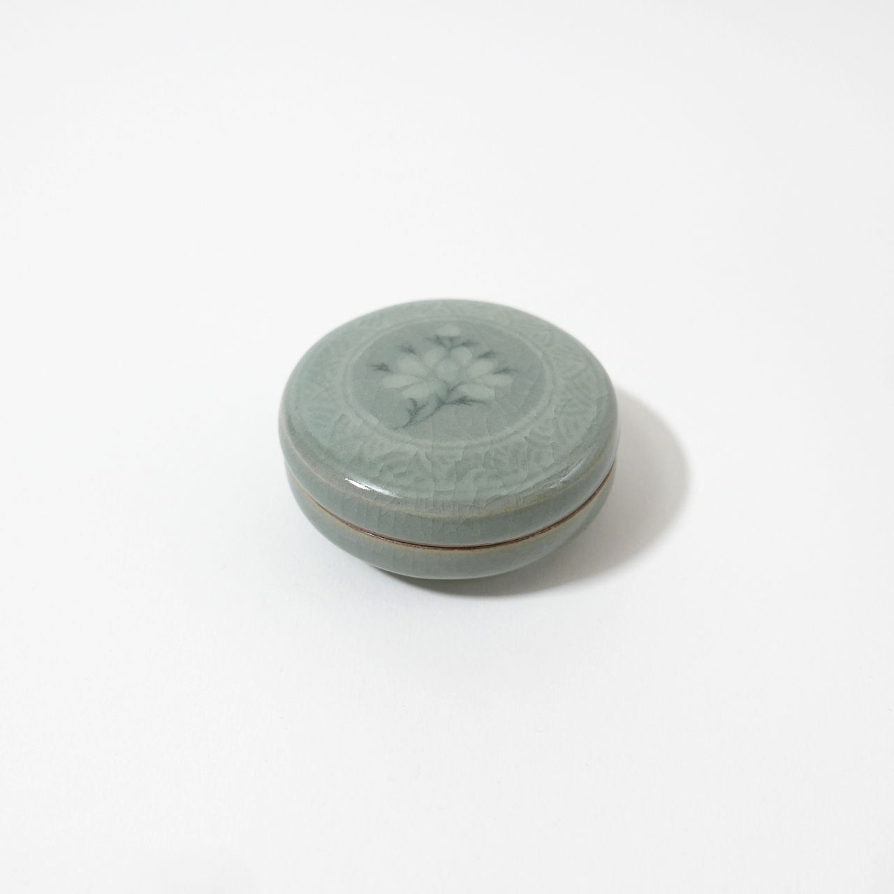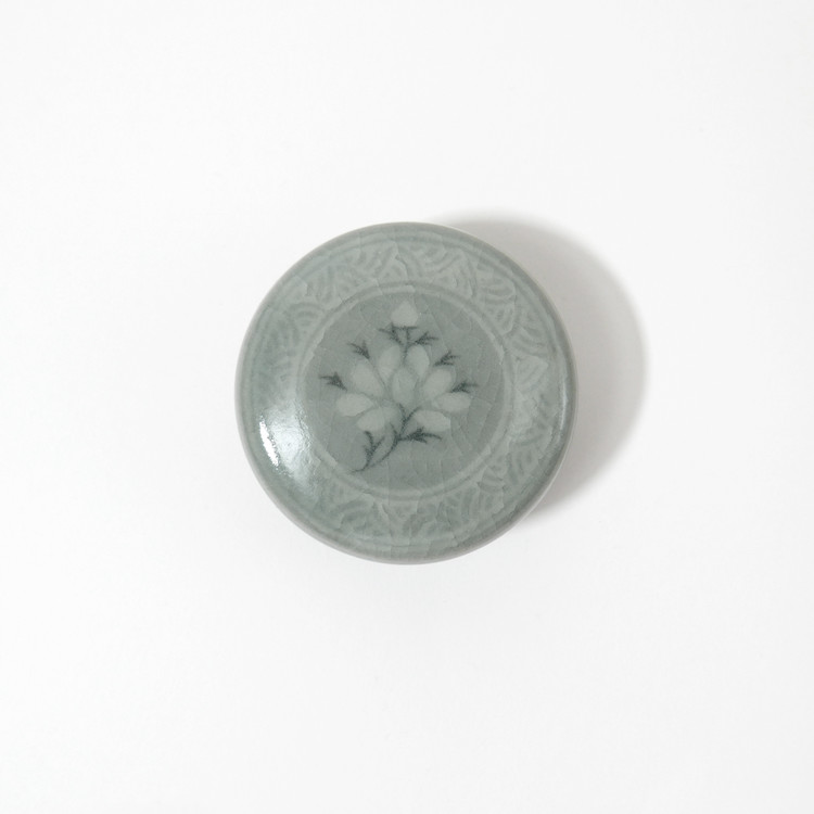 아름다운 화문이 새겨진 청자 상감 합을 소개합니다.