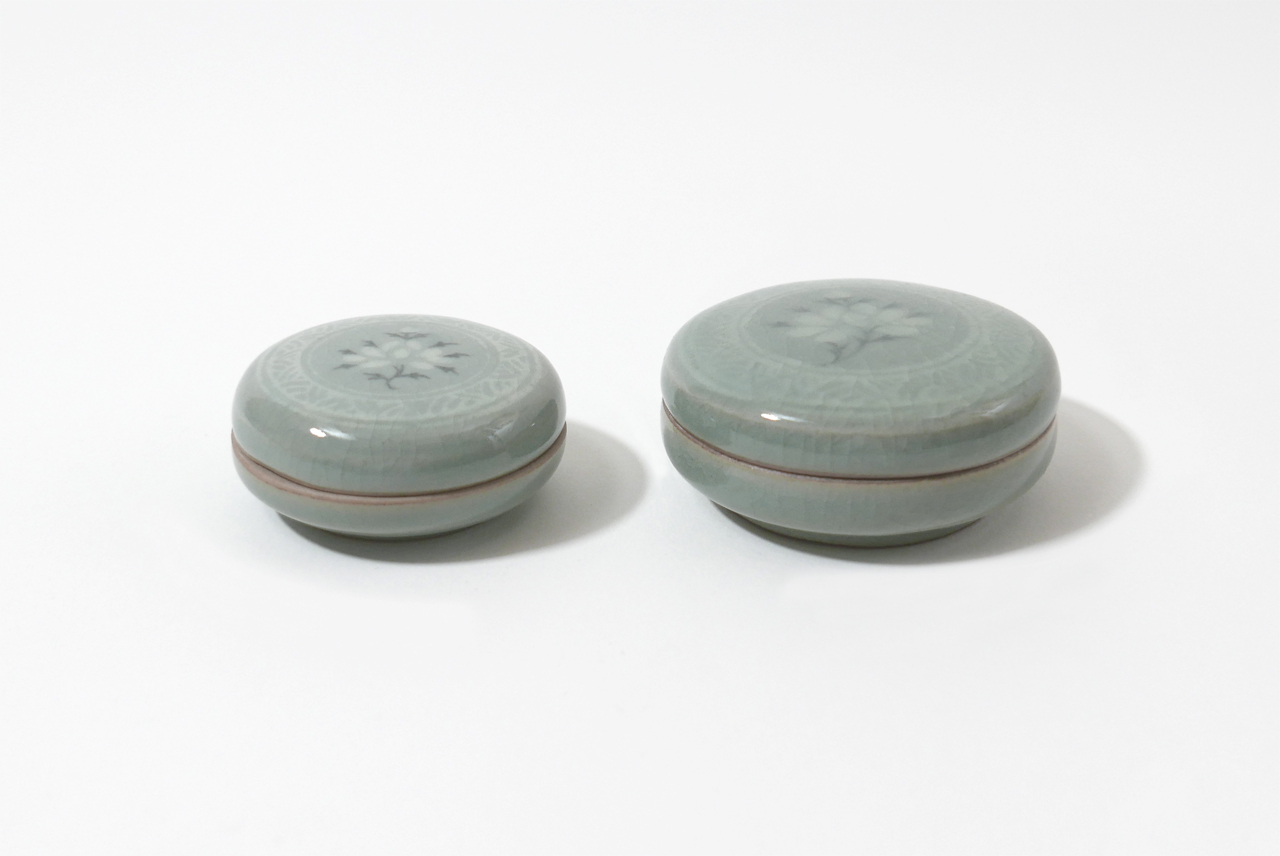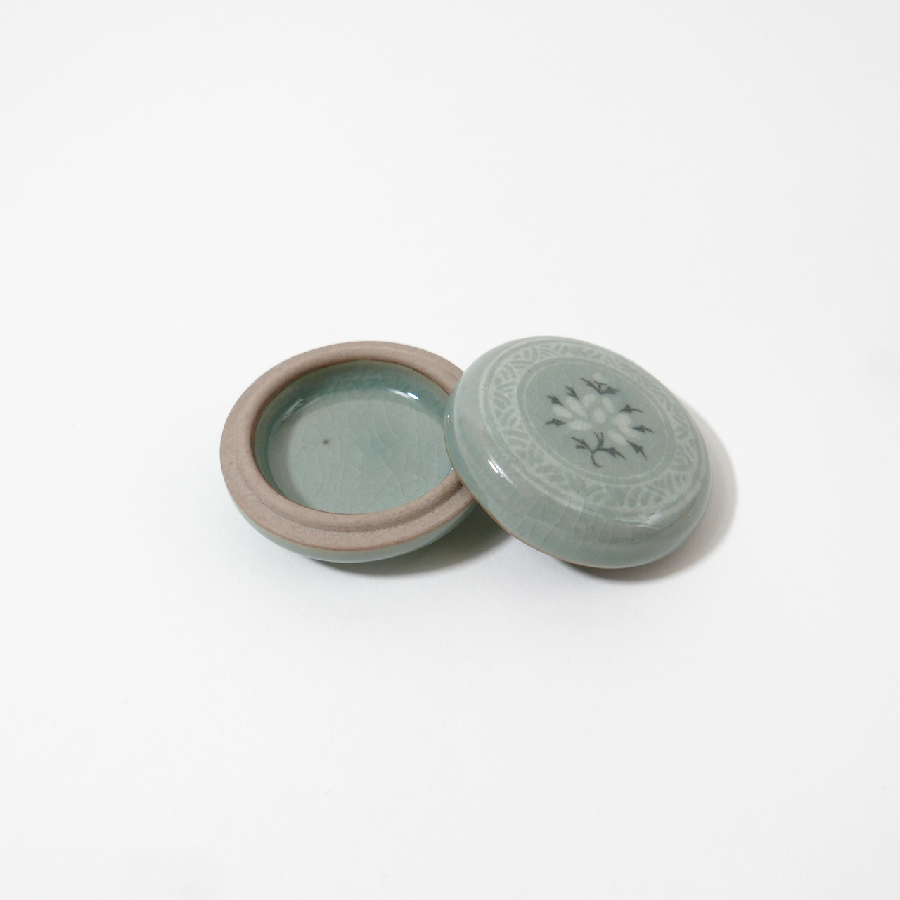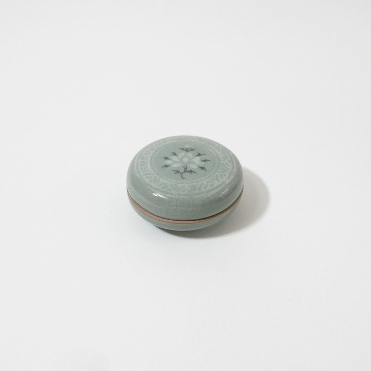 아름다운 화문이 새겨진 청자 상감 합을 소개합니다.