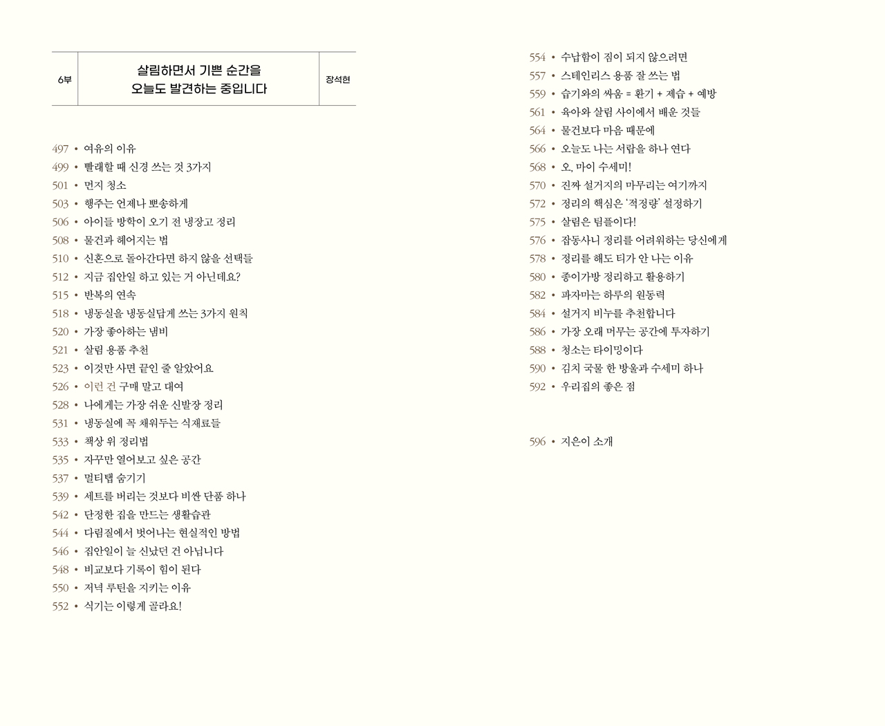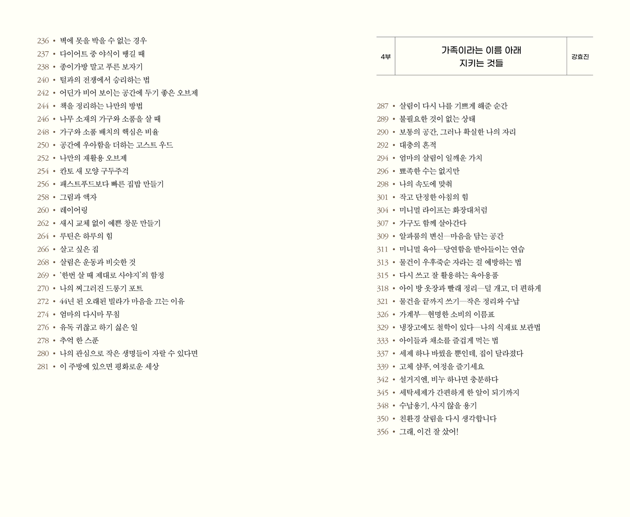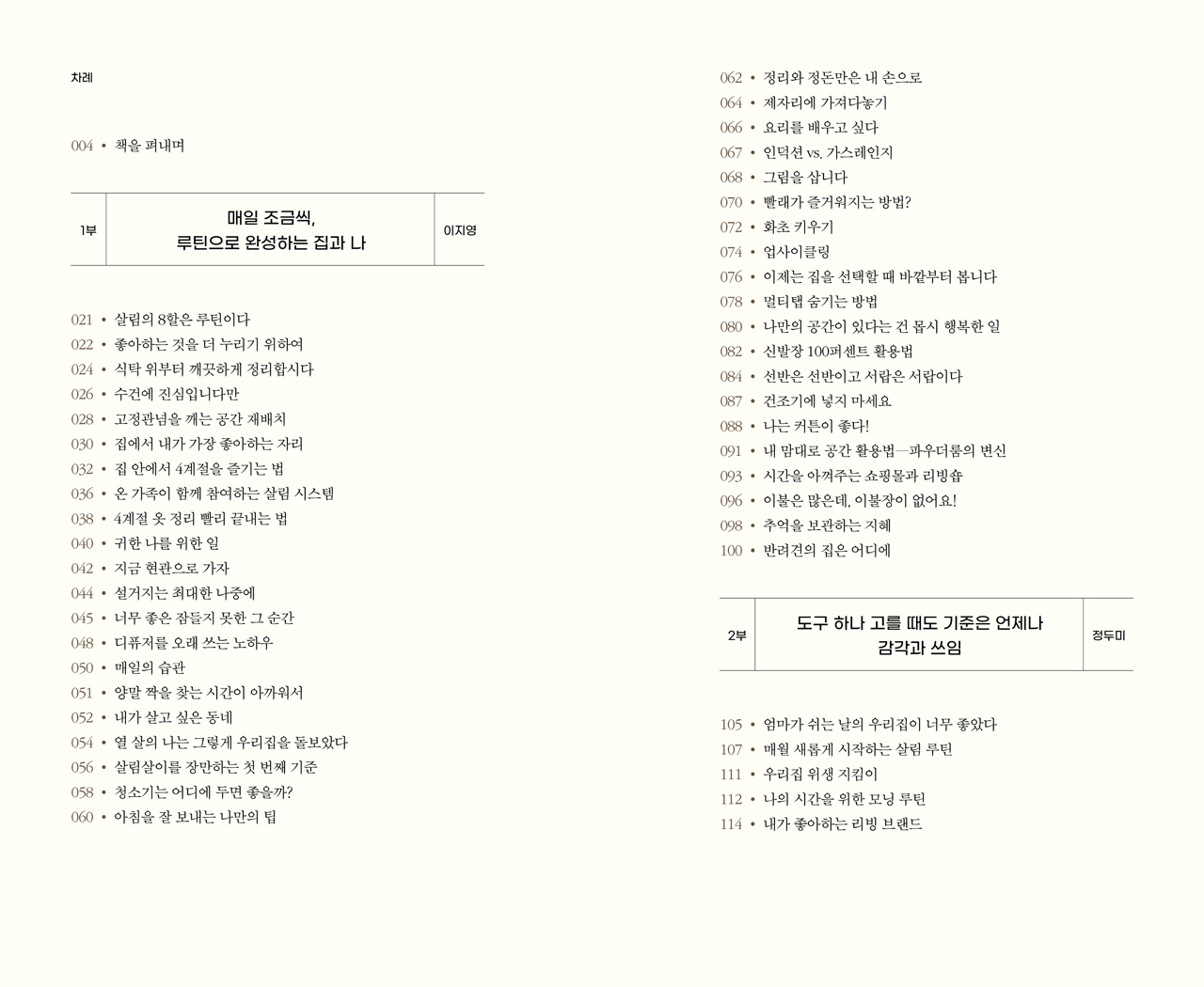 챕터별로 따라 하다 보면 언젠가 나의 살림 노하우가 생길듯합니다.