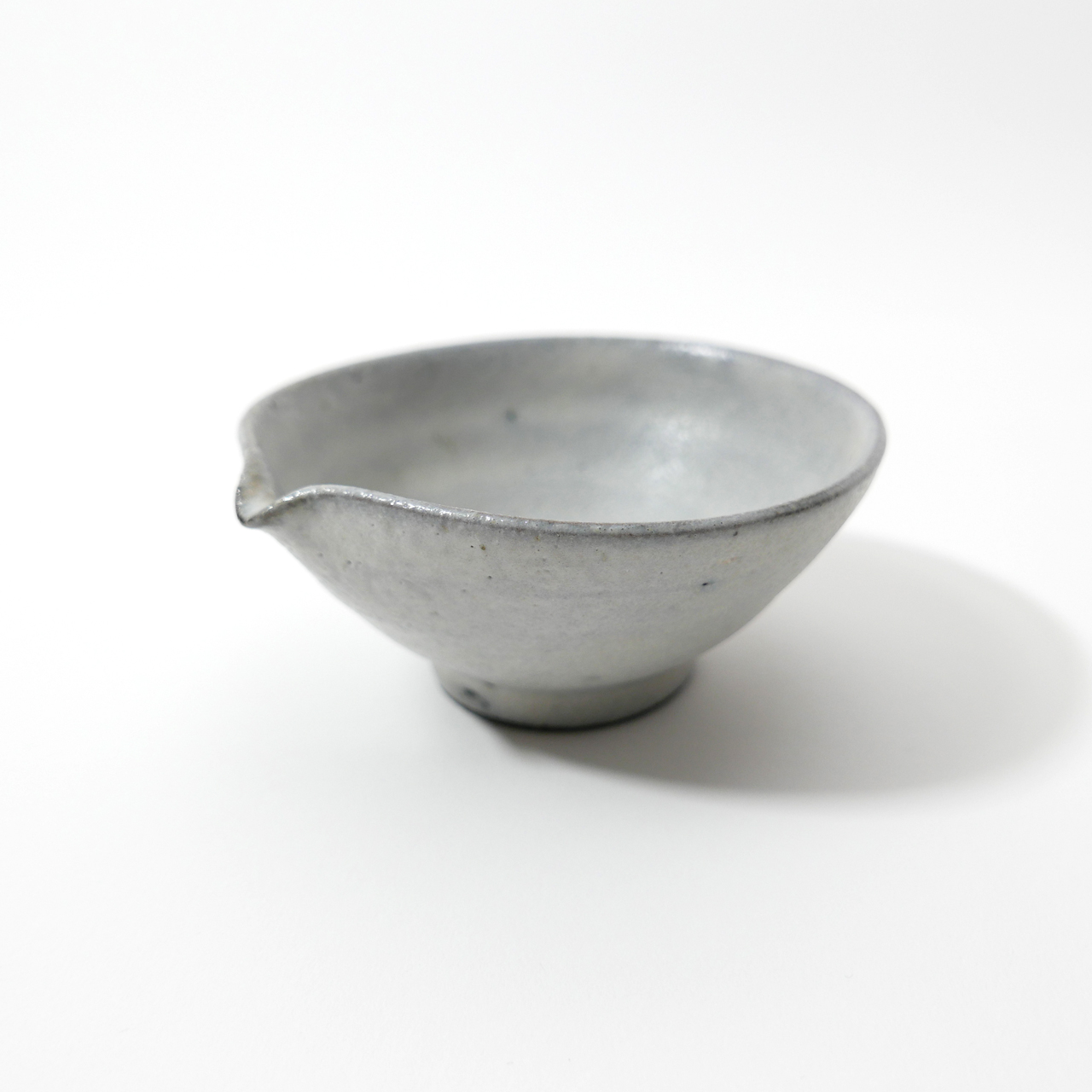 안개가 낀 듯한 깊이 있고 매트한 질감의 옅은 푸른색 그릇이