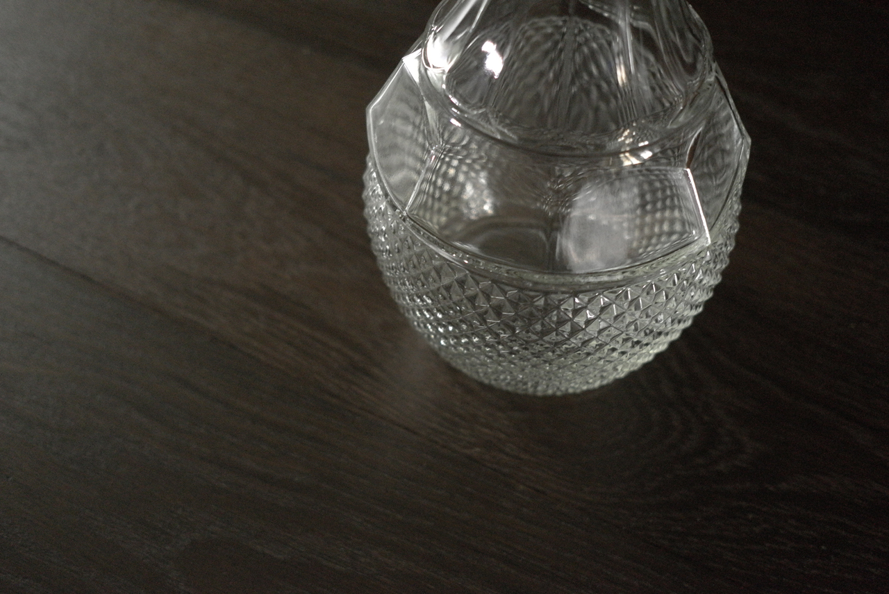 양각의 아름다운 패턴이 눈을 사로잡은 유리병은