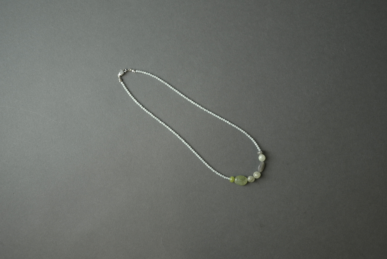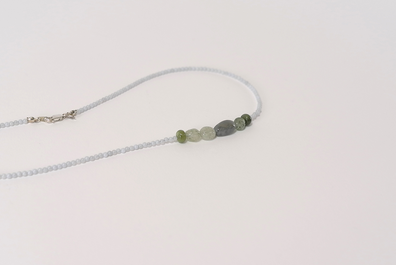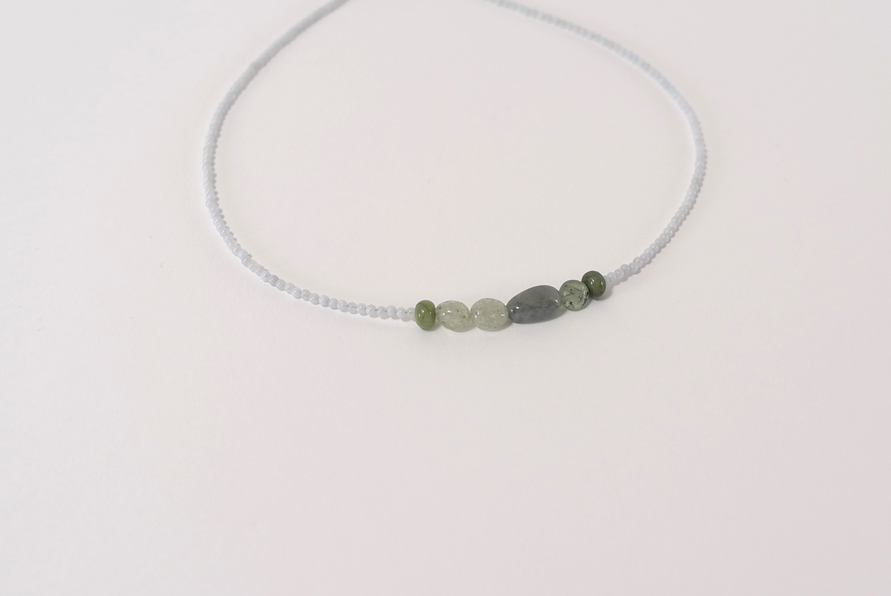 재패니즈 비즈와 비정형의 원석 옥을 엮어 만든 목걸이는