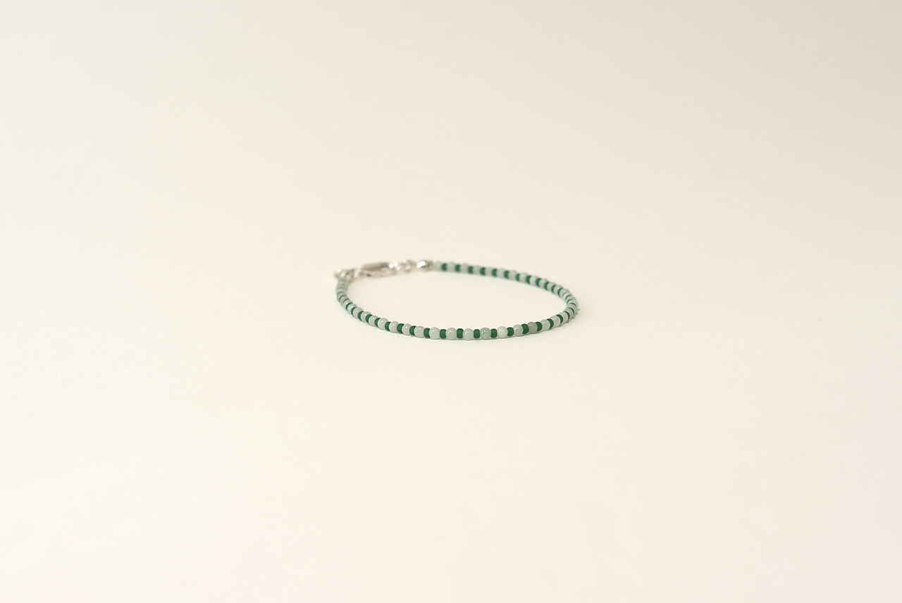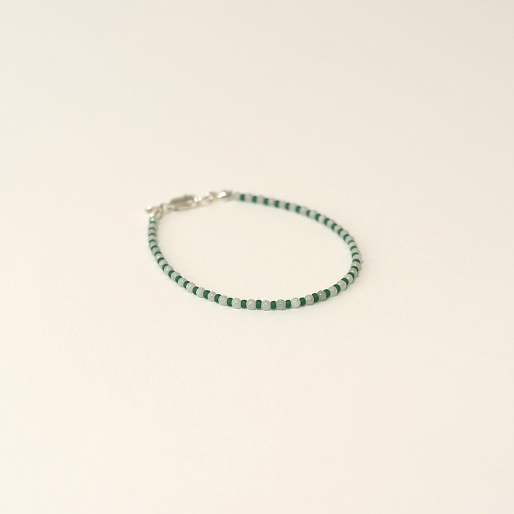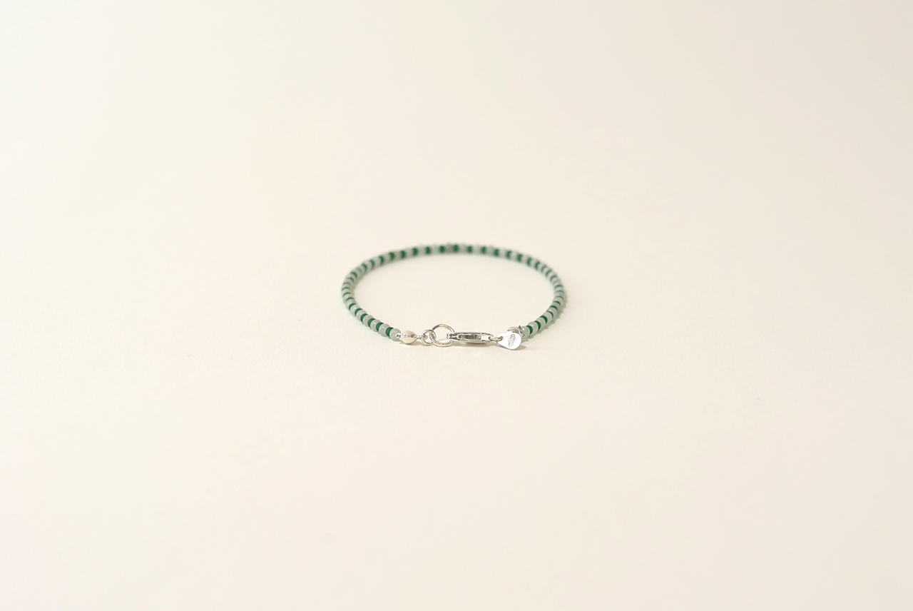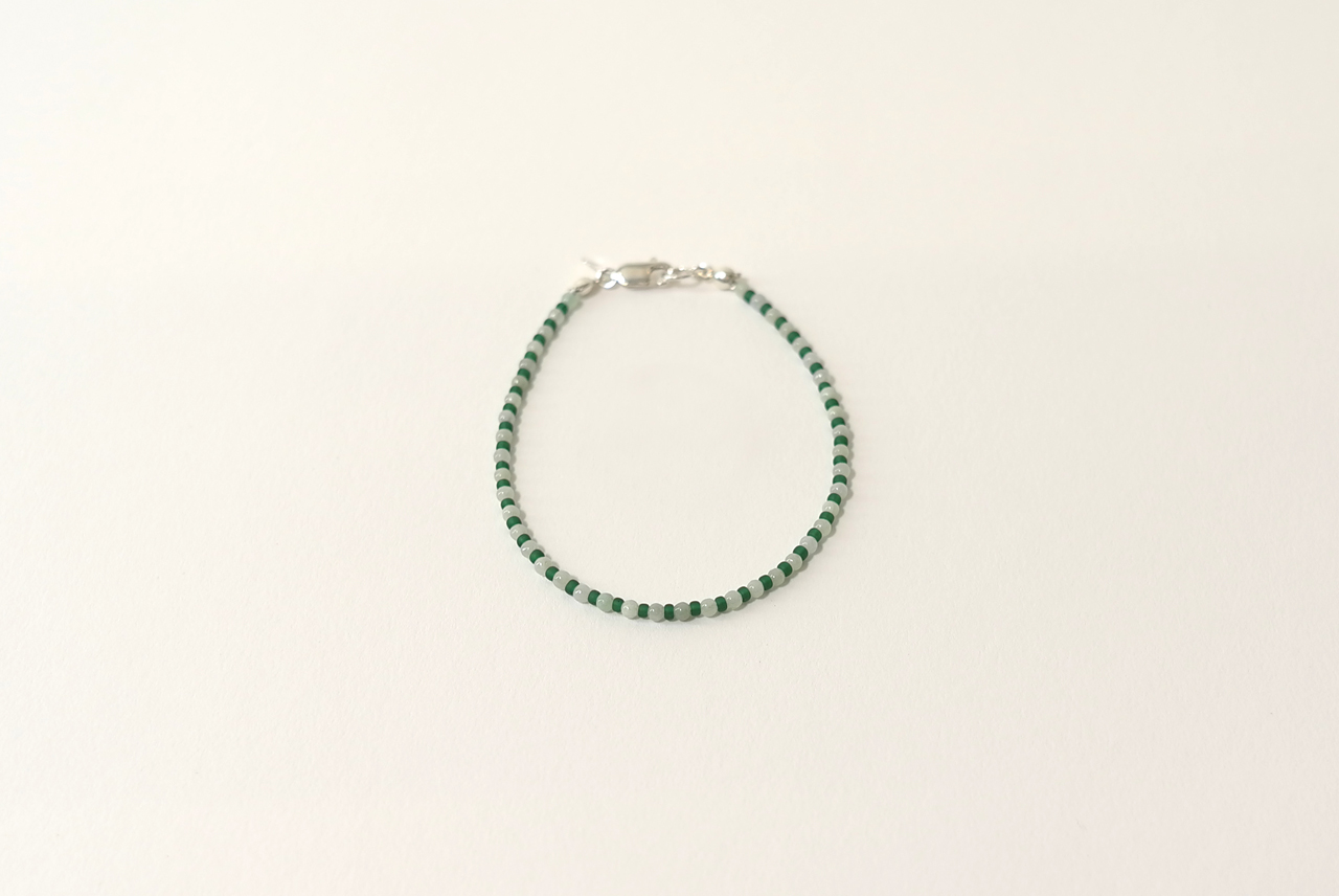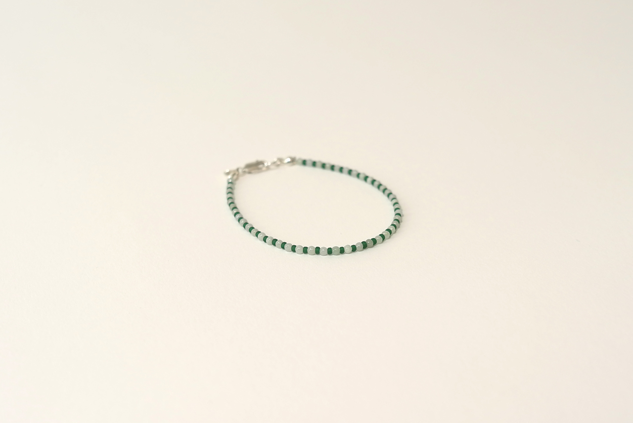 재패니즈 비즈와 동그란 원석 옥을 엮어 만든 팔찌는