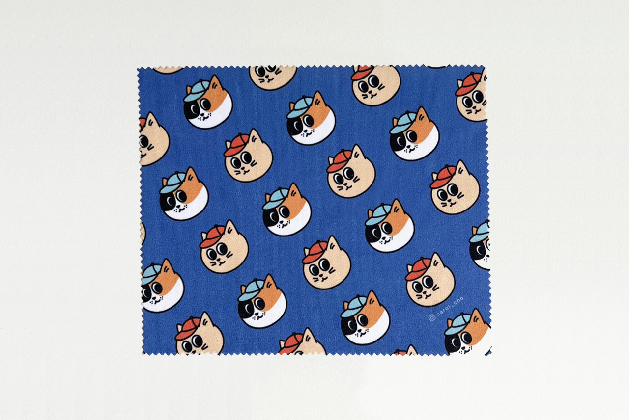 귀여운 고양이 얼굴이 담겨 있는 클리닝 크로스입니다.